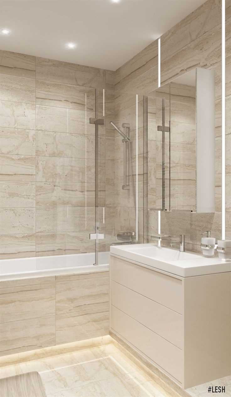 The bathroom in such a design solution is filled with warmth and comfort. It is distinguished by individuality and originality. It is spacious, a lot of air and light.