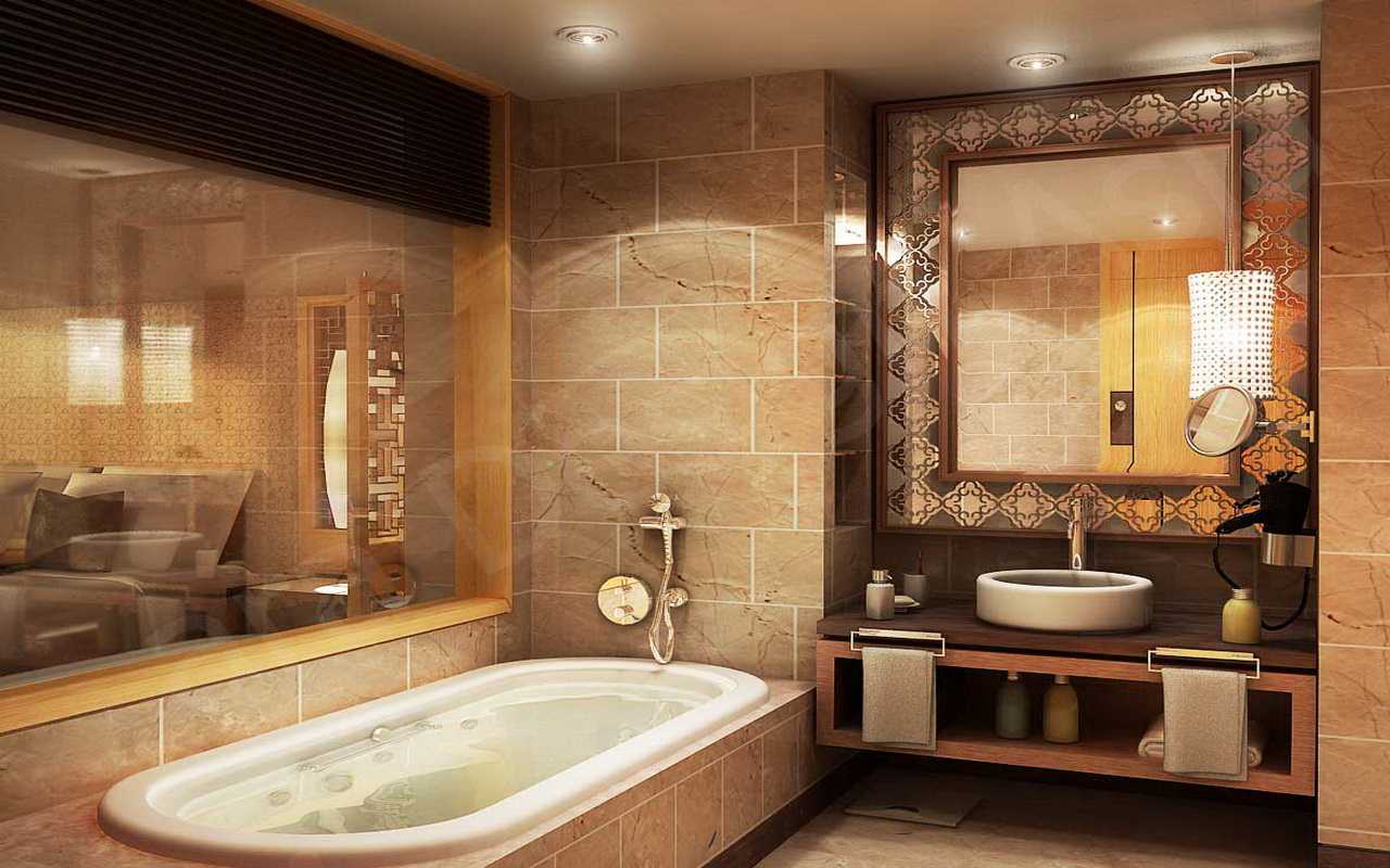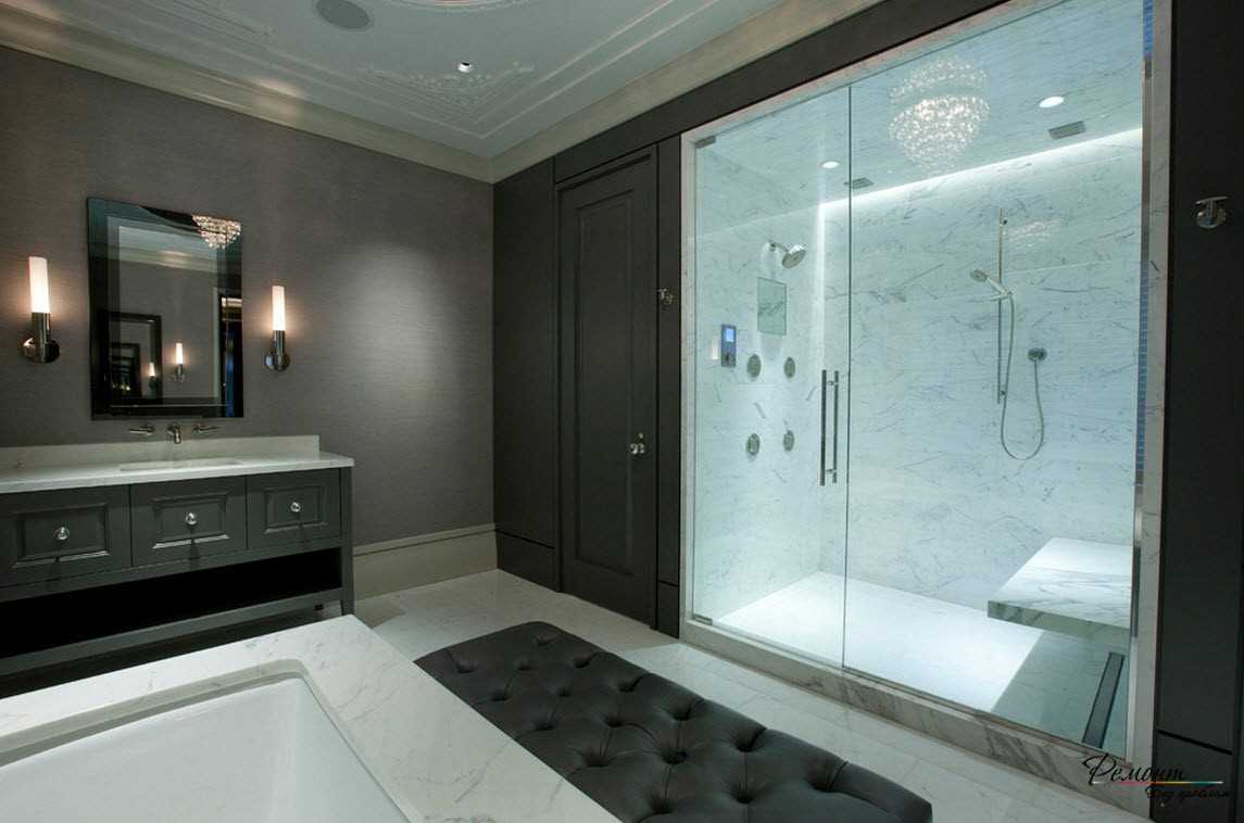 - Magnificent texture - a unique design of the room for hygienic procedures, relaxation and secluded relaxation.
