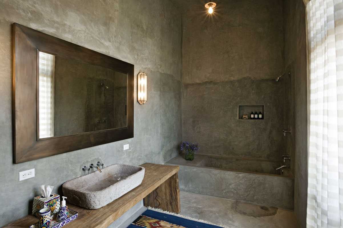 A surface with a beautiful texture will become the basis of an exclusive bathroom design in a city apartment and a private house. If desired, any color can be added to the dry or prepared mixture to get the preferred shade.
