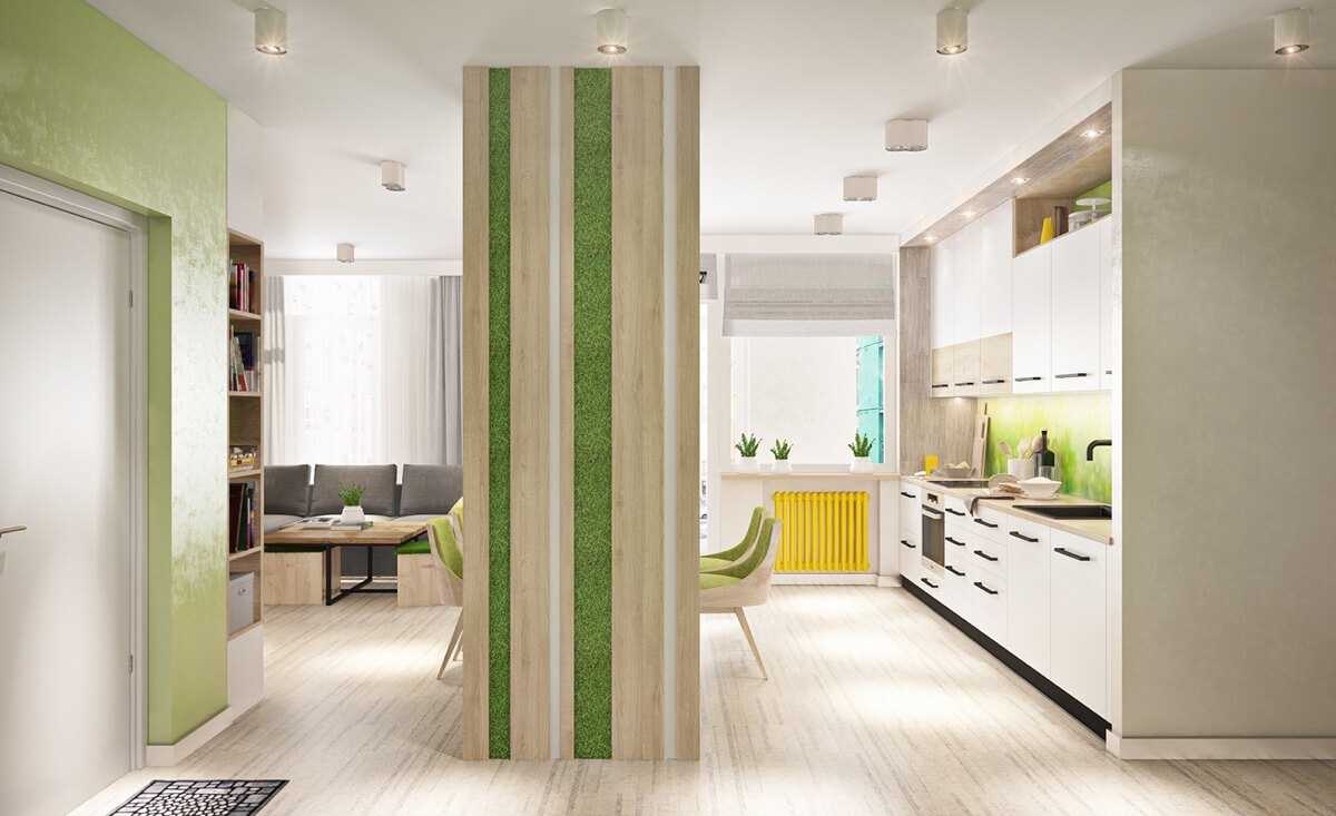 Important! The interior of the premises should remain clear and concise. At the same time, objects that cause associations with positive, sunlight, green grass and lightness become the dominant elements.
