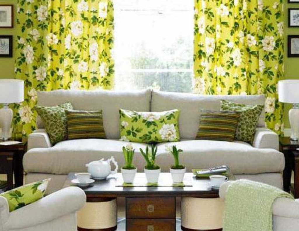 Leisure of the whole family is usually concentrated in the living room. This room is best suited for spring creativity. Mistresses can transform everything in the room without resorting to repairs. First of all, evaluate the color scheme and the proportions of the room.