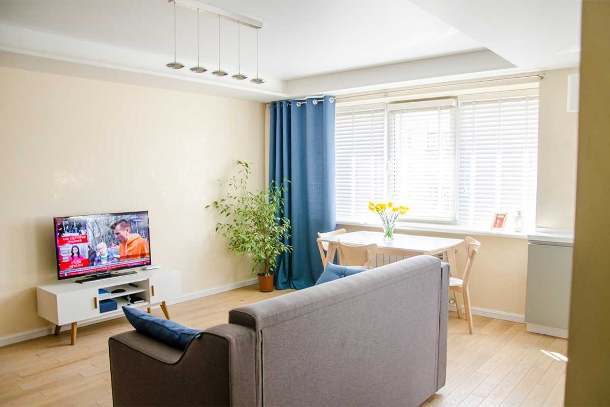 The walls behind the sofa are decorated with paintings or panels. The house will take on a different look if you change the zone lights and install a new chandelier. Lay a rug of fine textile on the floor; a vase with a floral arrangement will look good on a coffee table.