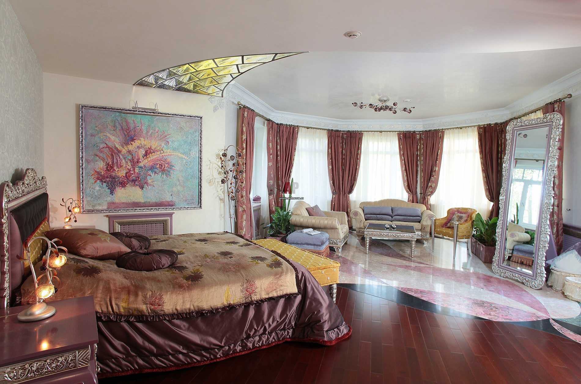 The subject of decor in the bedroom can be a light screen with stained glass inserts. Its purpose is more decorative, although it is able to cover part of the room’s space with itself, while not affecting the illumination of the hidden zone.