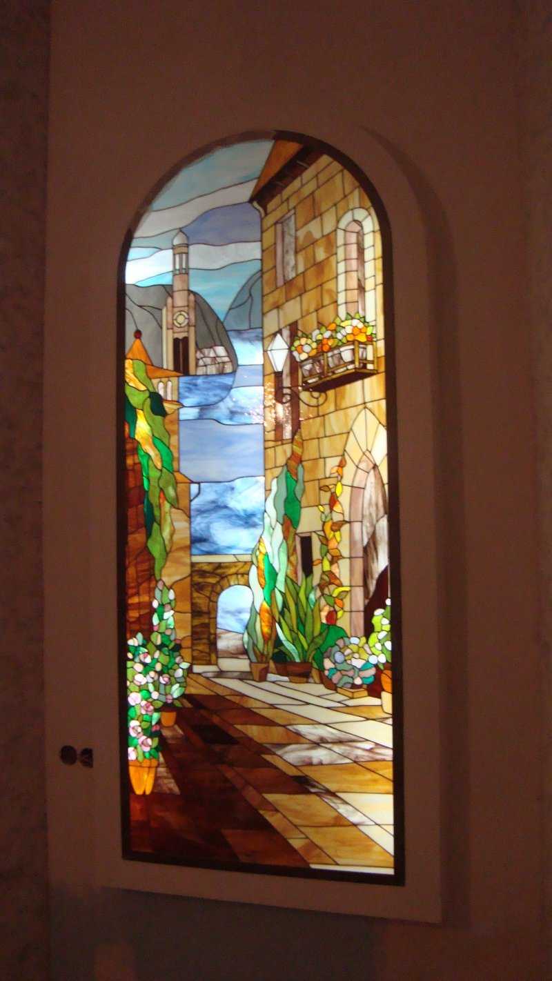 Initially, the stained-glass window was a carefully selected pieces of glass, interconnected by metal partitions, creating a contour of the picture and serving as a frame for glasses. This is how stained-glass windows were made in medieval times, and this technology is still being used.