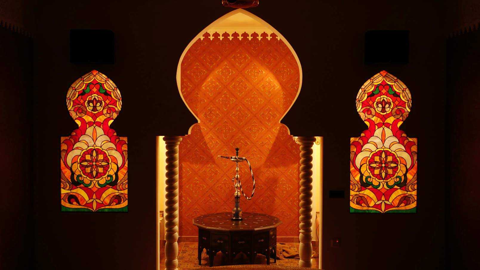 Stained glass doors will decorate the interior in a classic style. Properly selected plots will complement the Mediterranean, oriental designs of the living room.