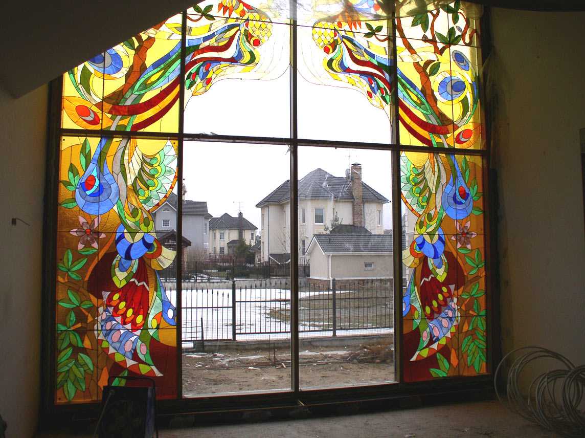 This is a classic stained glass window. In addition to such technology, other types of stained-glass windows are distinguished in modern design art.
