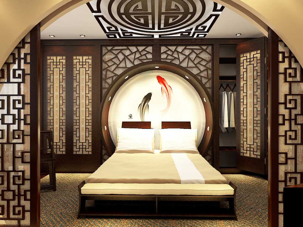 The bedroom, decorated in oriental style, personifies lightness. It is distinguished by the following factors.