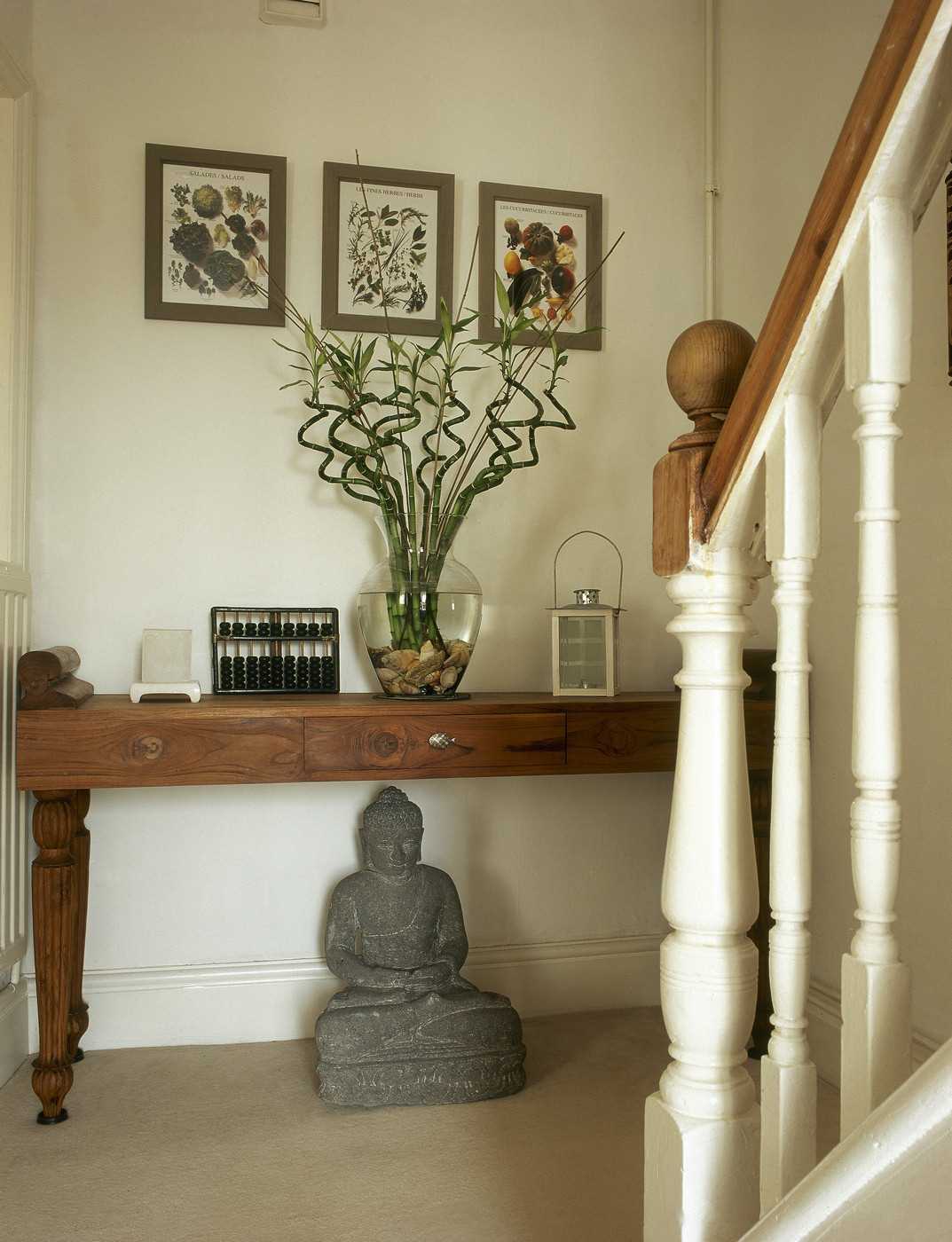 For the first time getting into a house, the corridor of which is decorated in an oriental style, one can be very surprised, confused. A large number of lighting devices, arches, arches catches the eye. Great place to play in contrast. Walls painted in light tones can be diluted with dark beams or panels, an image of sakura, ornament. Lighting should not be too bright. Ideal if it is muffled. If the hallway area is small, one light fixture will be enough. If more than 3-4 meters, more will be needed.