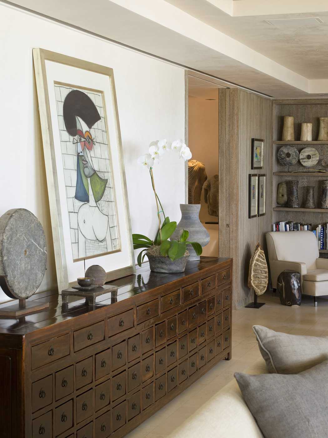The room, decorated in an Asian style, is distinguished by its minimalism. It is characteristic of him: