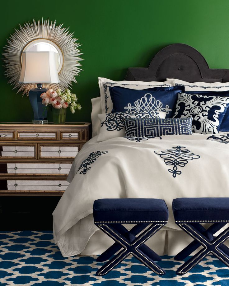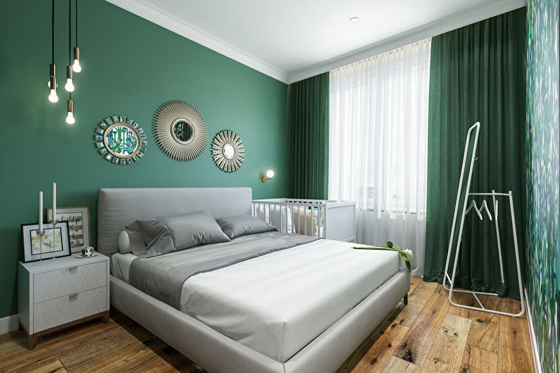 The skillful use of green shades in the bedroom will create a pleasant atmosphere for relaxation.