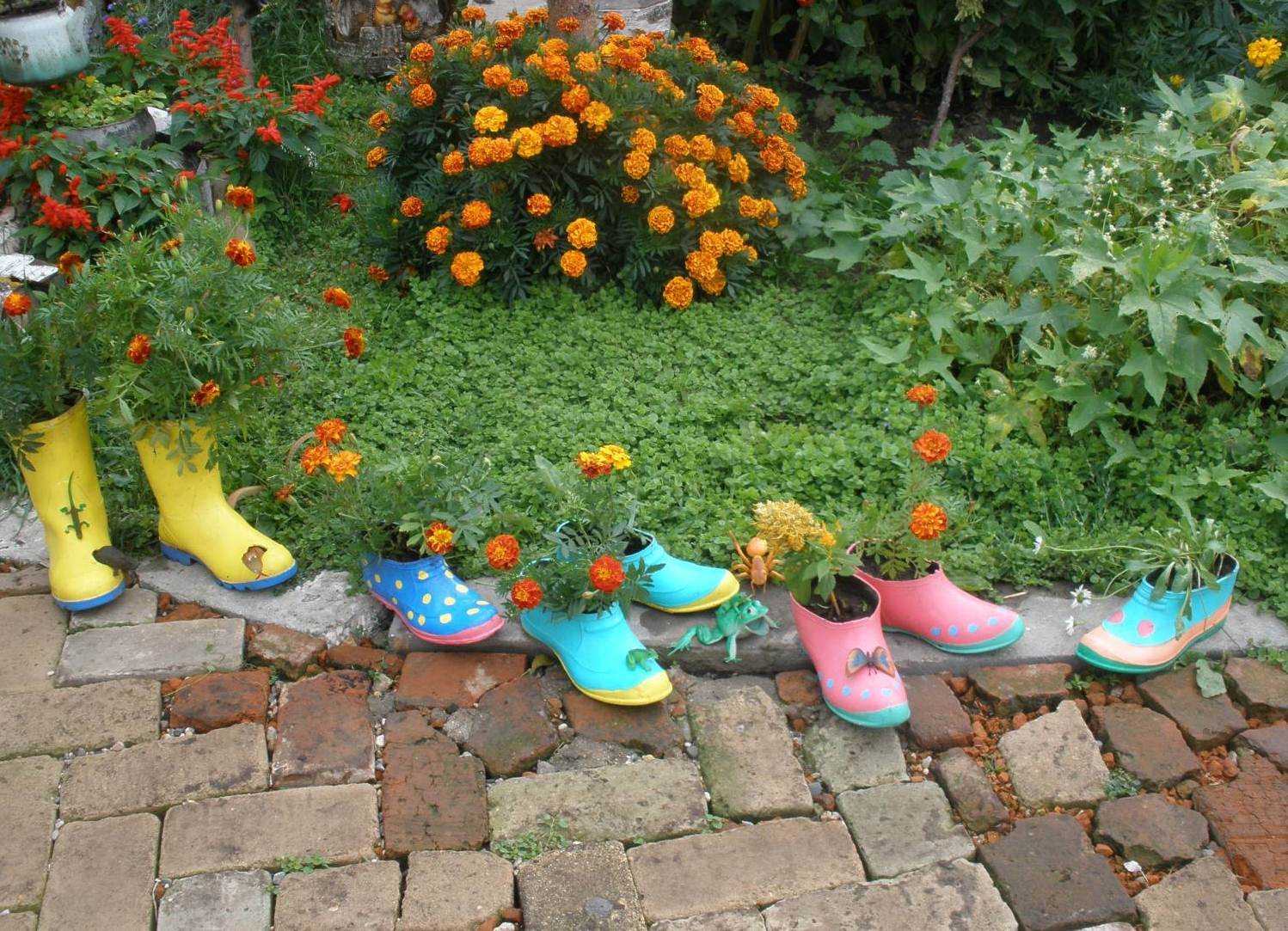 Tip. As containers for planting flower seedlings, old jeans and boots are suitable, but it is better to first fill the soil in garbage bags enclosed in pants.
