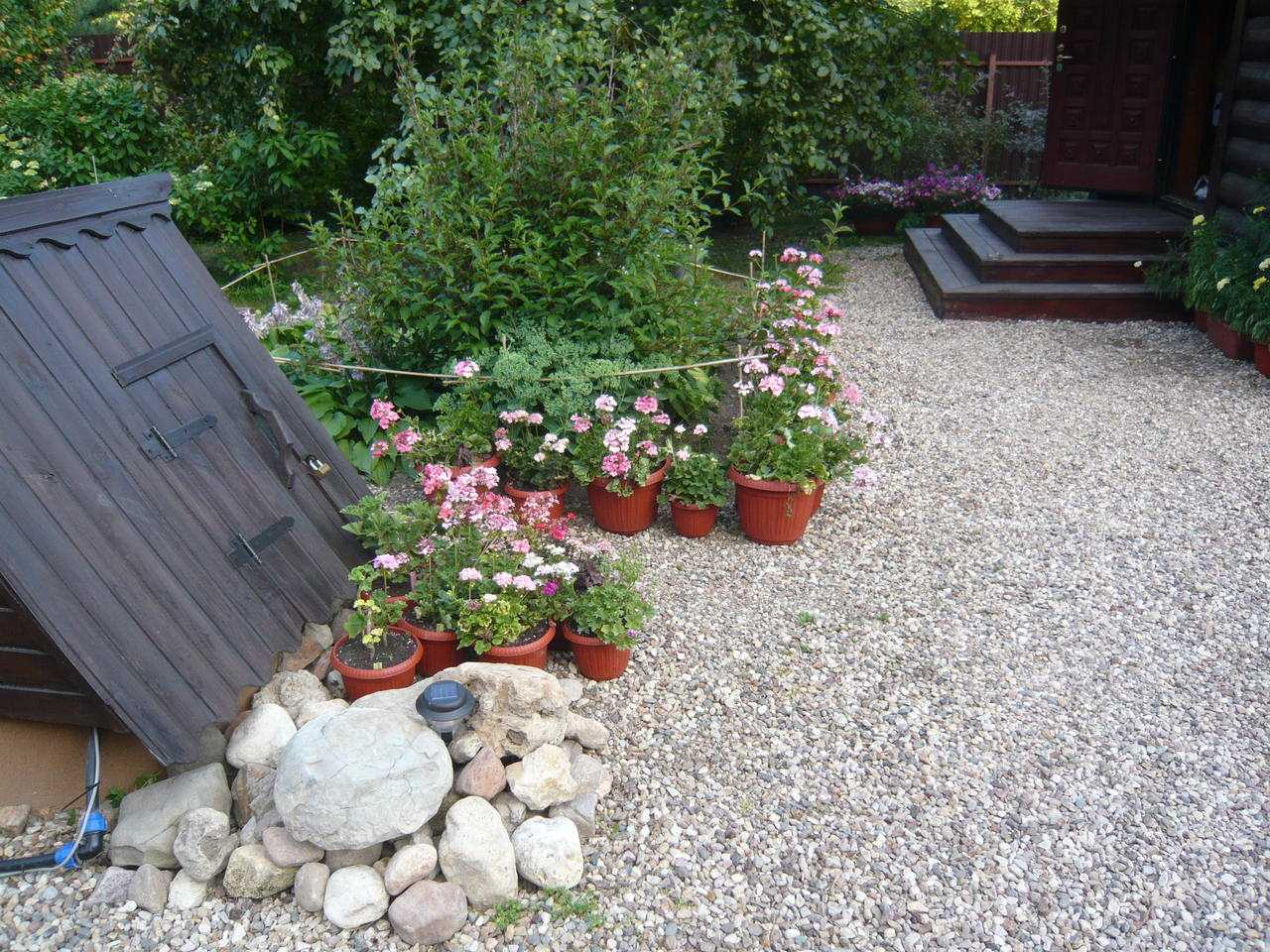 Original flowerbeds and sandboxes from stumps