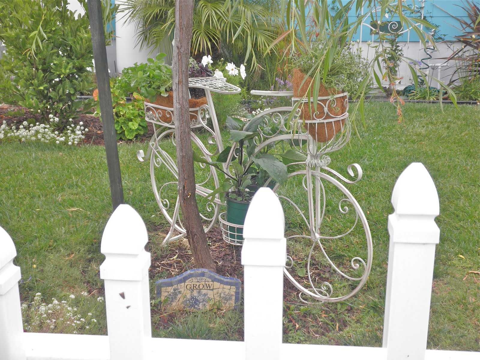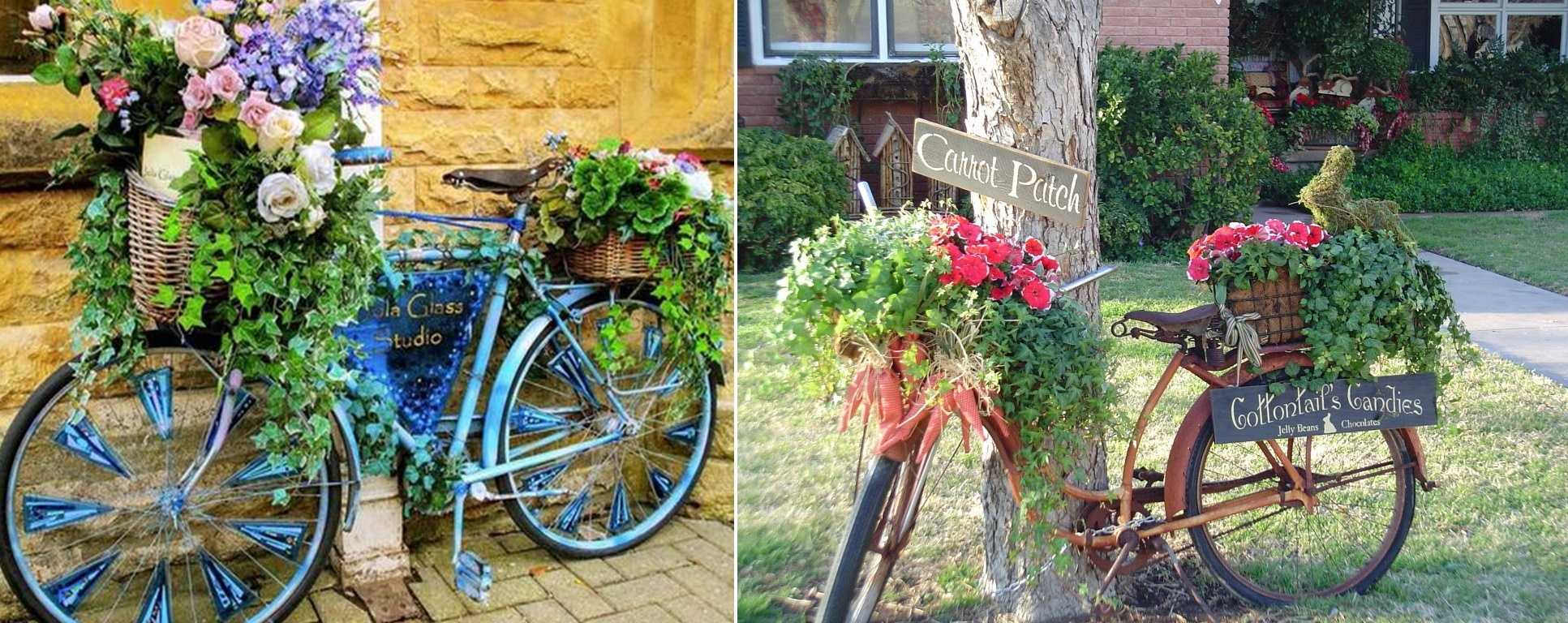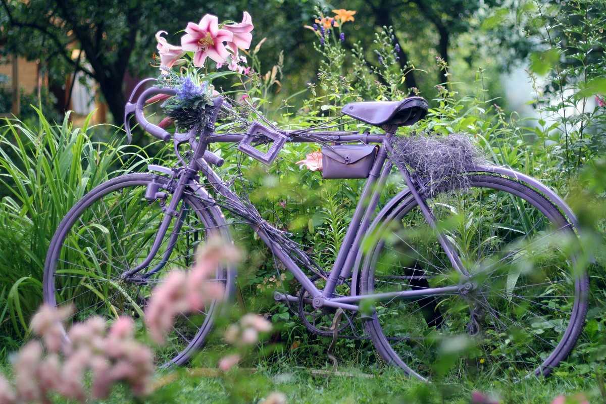 It is advisable to treat old bicycles as a decoration from rust with sandpaper, coat with a primer for metal and paint. When the base is ready, the frame is securely fixed so that the bike does not collapse under the weight of the soil in the pots attached to it.