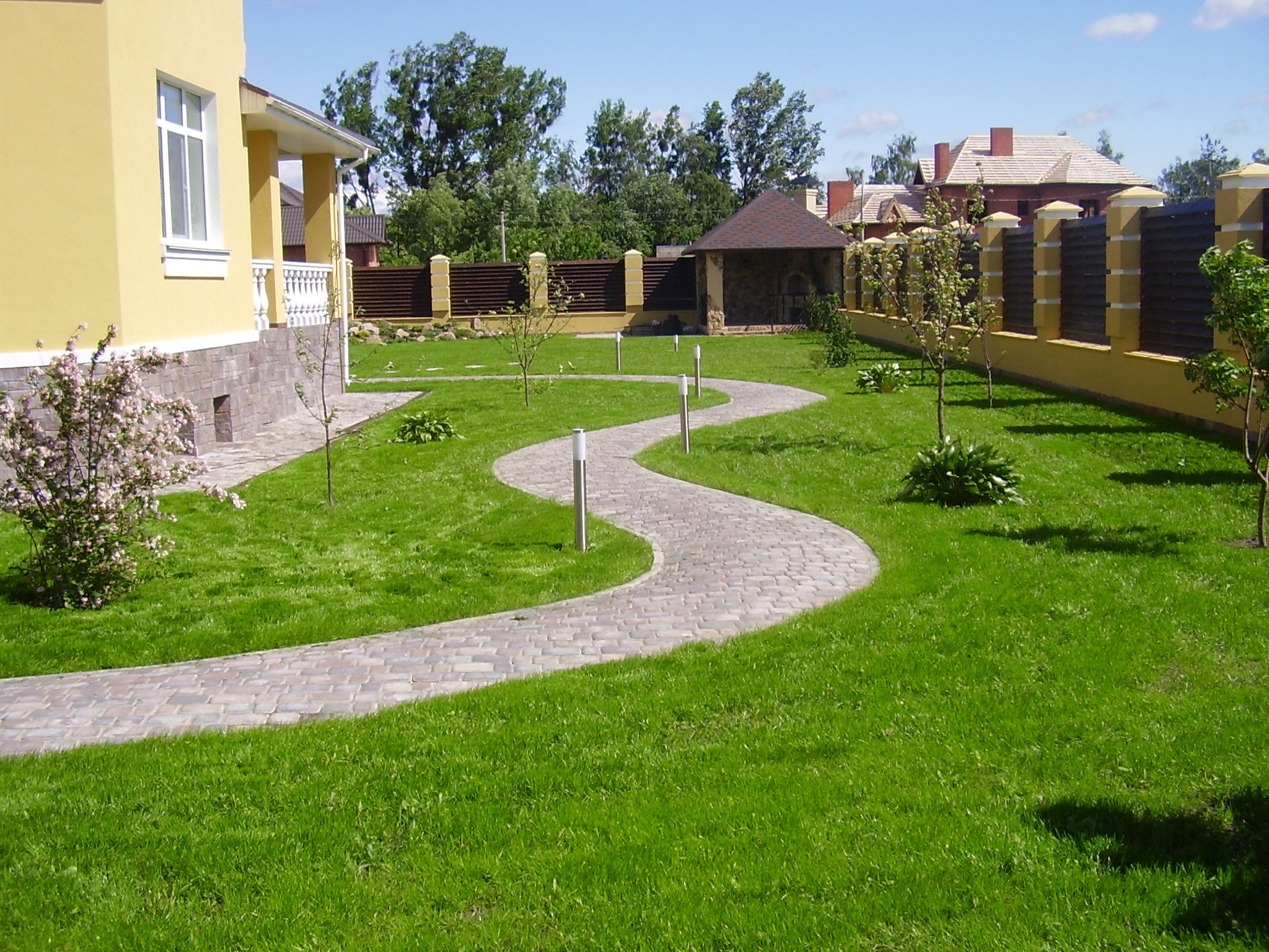 The design of the courtyard of a private house. Choose a stylistic direction