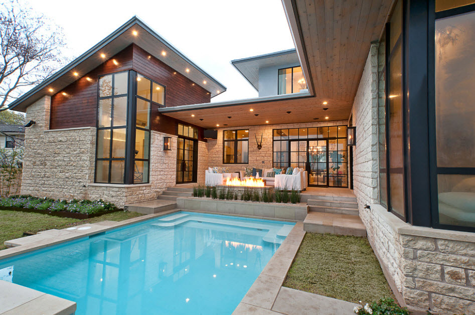 Modern style is characterized by straight lines, clear geometry and a vast building area