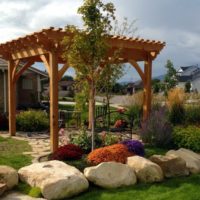 Beautifully decorated wooden gazebo will become a favorite vacation spot for the whole family