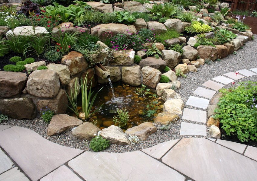 A large amount of land will be necessary to create a reservoir or pond. The amount of land formed during this can be used to create alpine hills. Also, land may be required to level out individual surfaces of the site, or to reduce the angle of general inclination. Implementing the latter option, you will have to work hard with the device of retaining walls.