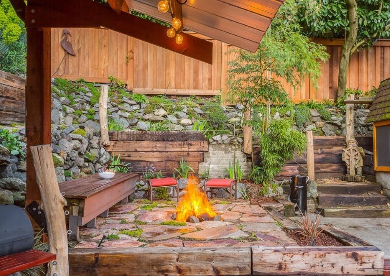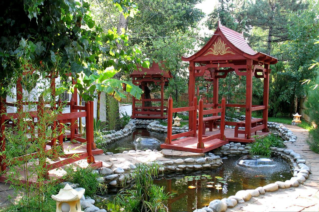 If the size of the plot allows, in a secluded corner you can place a small garden of stones in the eastern style