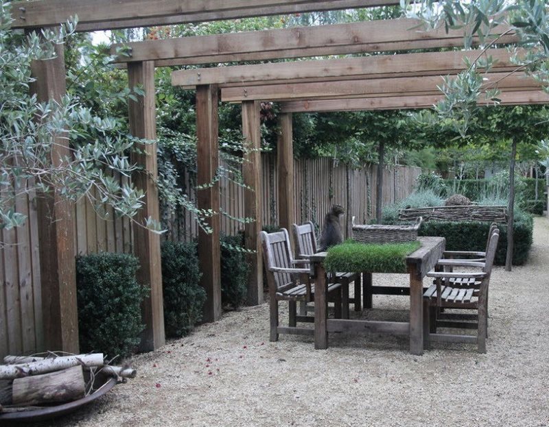 The frame, decorated with climbing plants, will create a shadow and cool inside. Having picked up a variety of climbing roses, you will receive lush flowering throughout the summer.