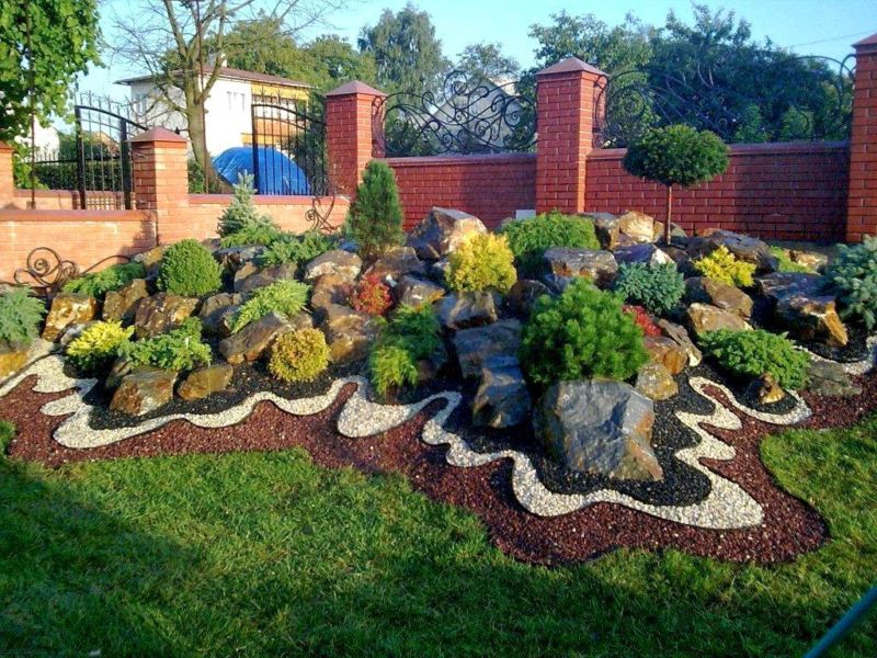 In the back of the courtyard of a private house you can set up a small rock garden. This trend came to us from Japan. Choose stones in shape and color that are most in harmony with the overall composition. They create a durable environment for your plants. Place them on the site as they would look in nature, or lay out according to the selected pattern-drawing.