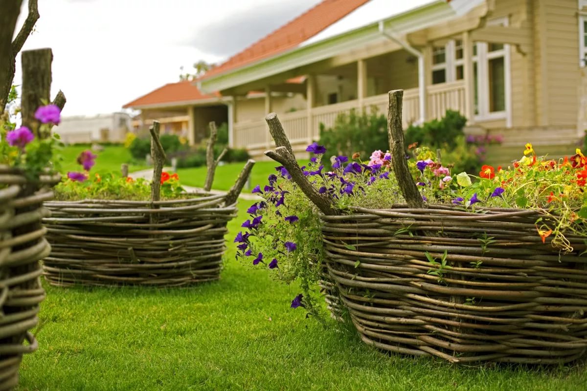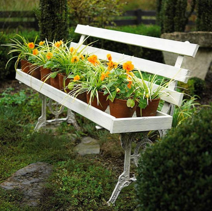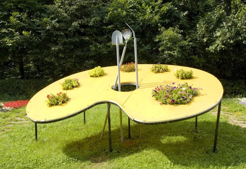 The flowerbeds are shaped and framed. Their appearance is limited only by your imagination. For a flower bed, which will be a decoration of the yard, any container is suitable. It remains only to paint and fill with earth.Old tires painted with different colors are used, a holey watering can lying for many years, baskets, furniture, plastic products, even dishes.