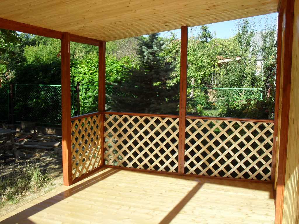 Advice! Install glass sliding doors, allowing at a certain moment to let in freshness or, conversely, to protect from rain.