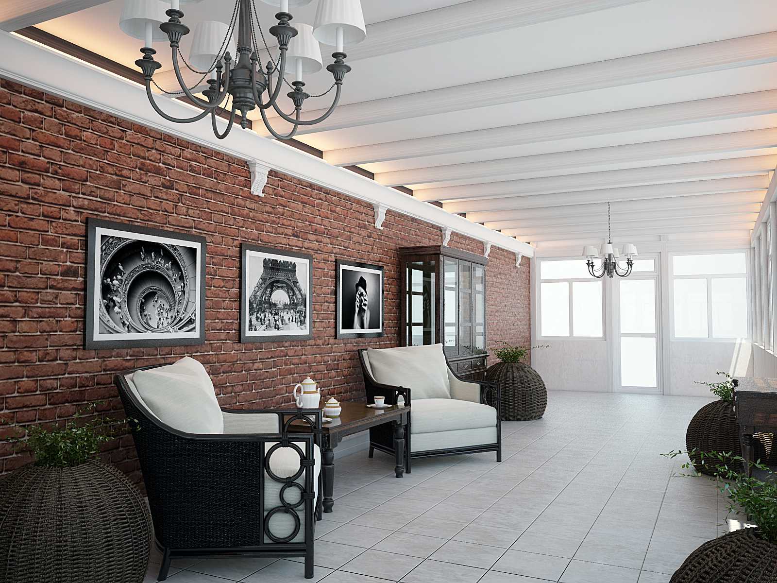 The chandelier in the design of the veranda will look very beautiful