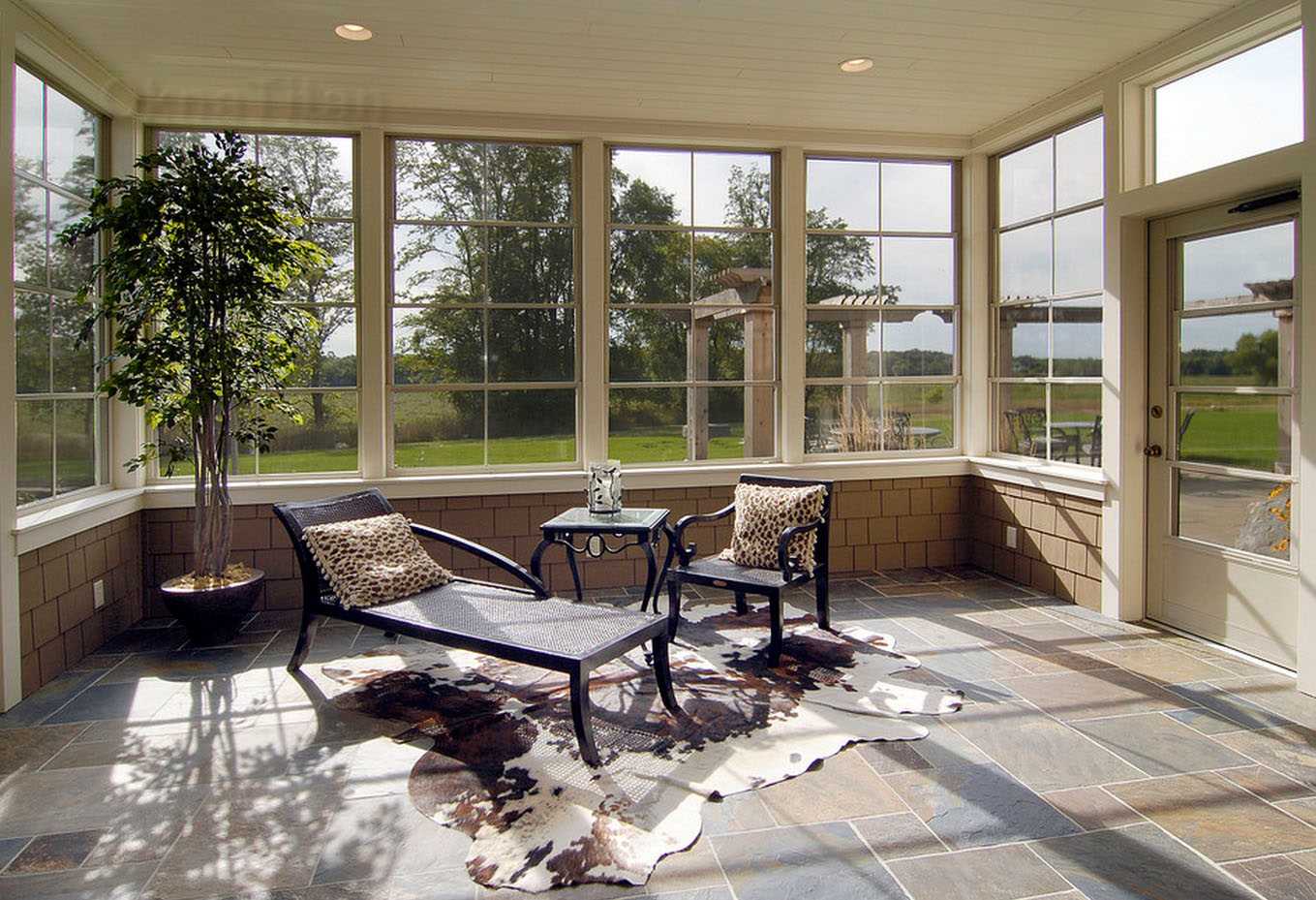 To create a good view, choose a large space, while the windows can be from 2-3 sides. The porch should not be confused with the veranda, because it does not have a roof and walls or they do not border the main building. Want to create a complete room, as in a private house? Insulate and completely close the annex, arrange it in the necessary style and arrange functional furniture.