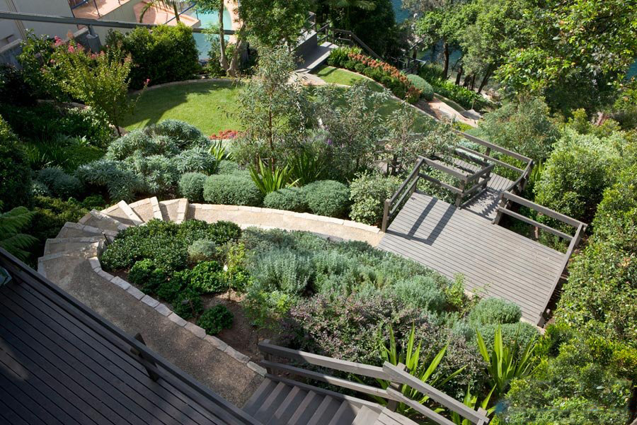 Terraces are a popular way to give an incline to a stepped view, but work as long as the incline is not too large.