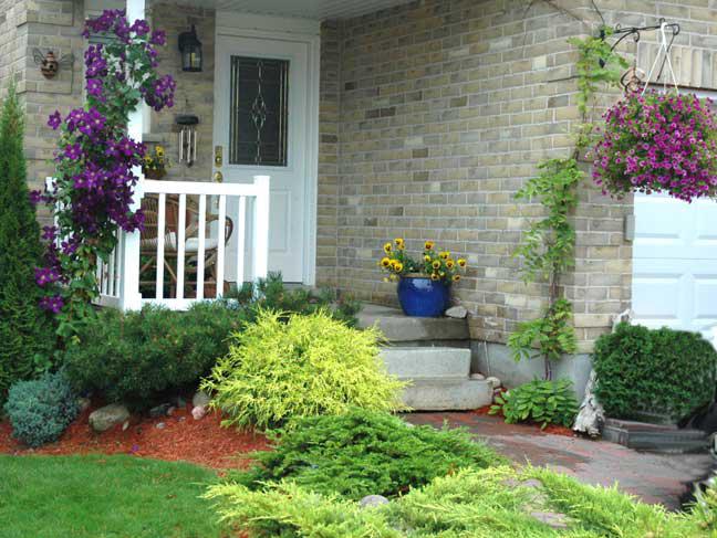 Coniferous plants at the entrance to the house are stable, do not require complicated care, they look solid at any time of the year