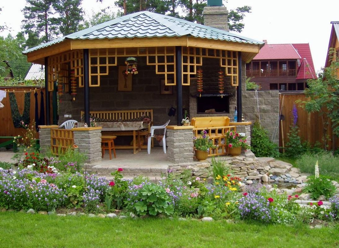 Design a place to relax first, and then fill the grounds with green spaces. So you get a comfortable structure, which later will also become a beautiful garden