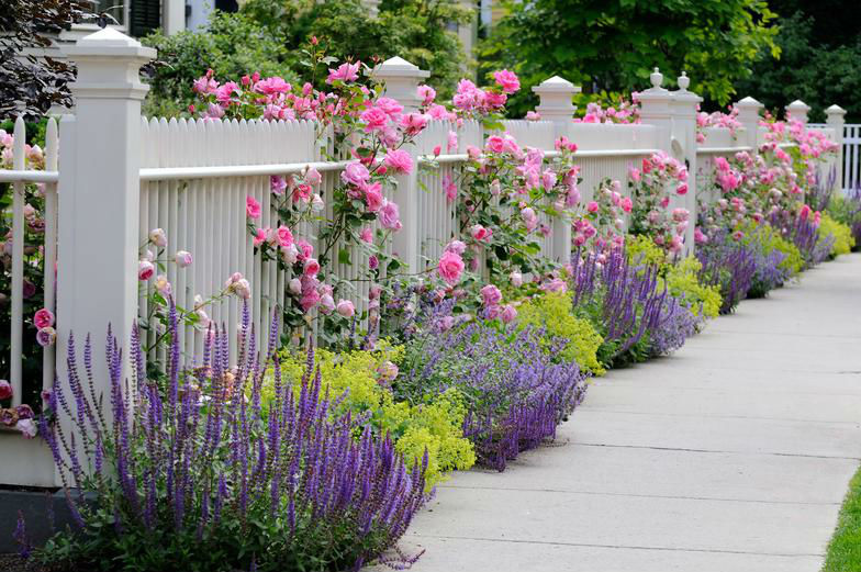 A simple but very beautiful fence in front of the entrance to the garden