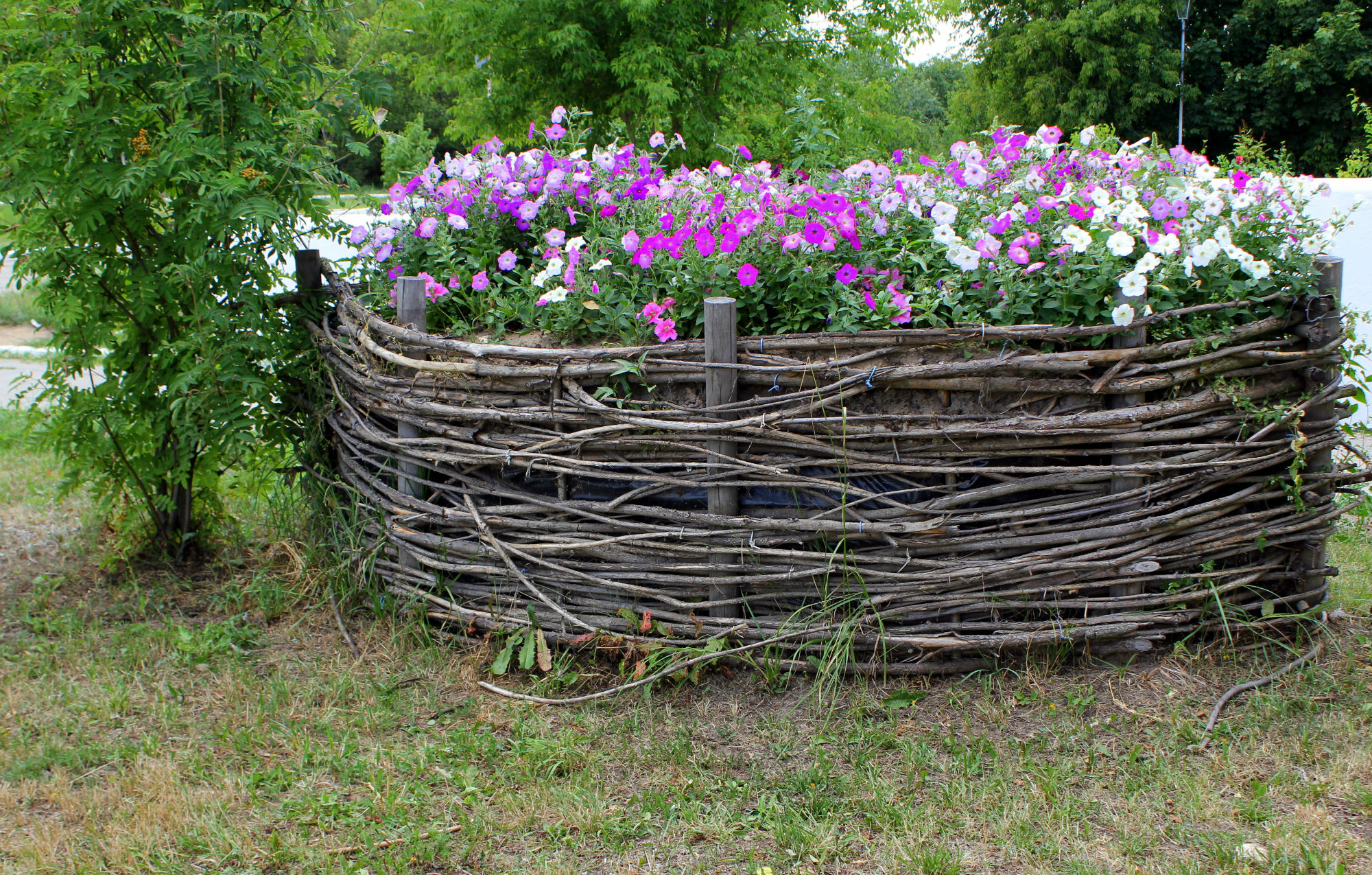 The tree trunk circle can be arranged as a flower bed