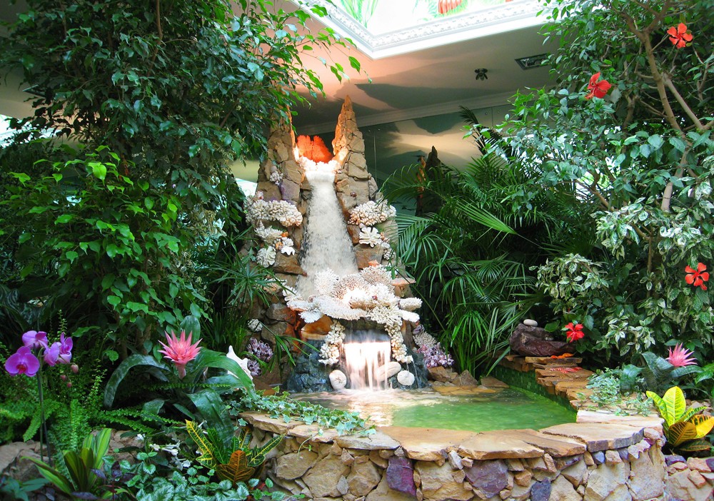 An abundance of vegetation and necessarily a pond or fountain