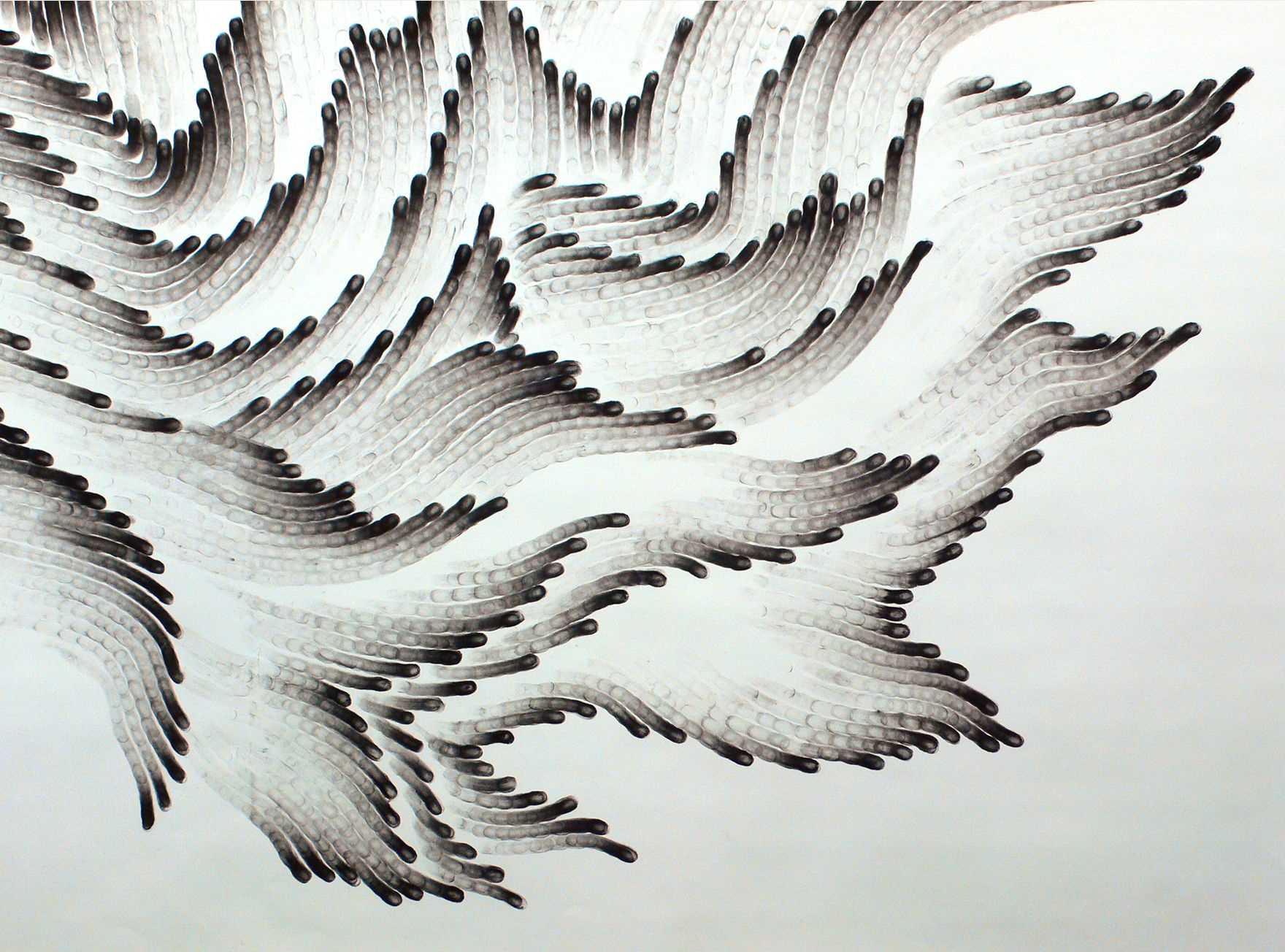 To do this, you need flat brushes of different widths. The method of applying the image is very simple - they brush along the wall with a little pressure, make a slight turn, breaking away from the surface. The edge will be narrow or diffuse, depending on the width of the brush and the direction of the strokes.