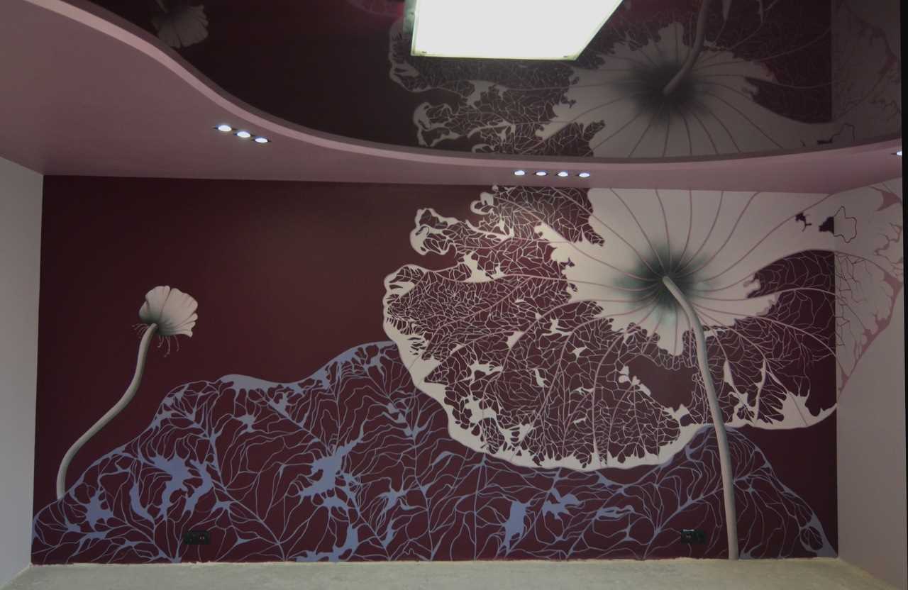 Screen painting is not the only way of drawing for those who do not consider themselves an artist. Drawings with wide and narrow strokes are also quite simple. For example, in the bedroom you can schematically depict the contour of a swan flapping its wings, and flying feathers can be done using the curl technique.