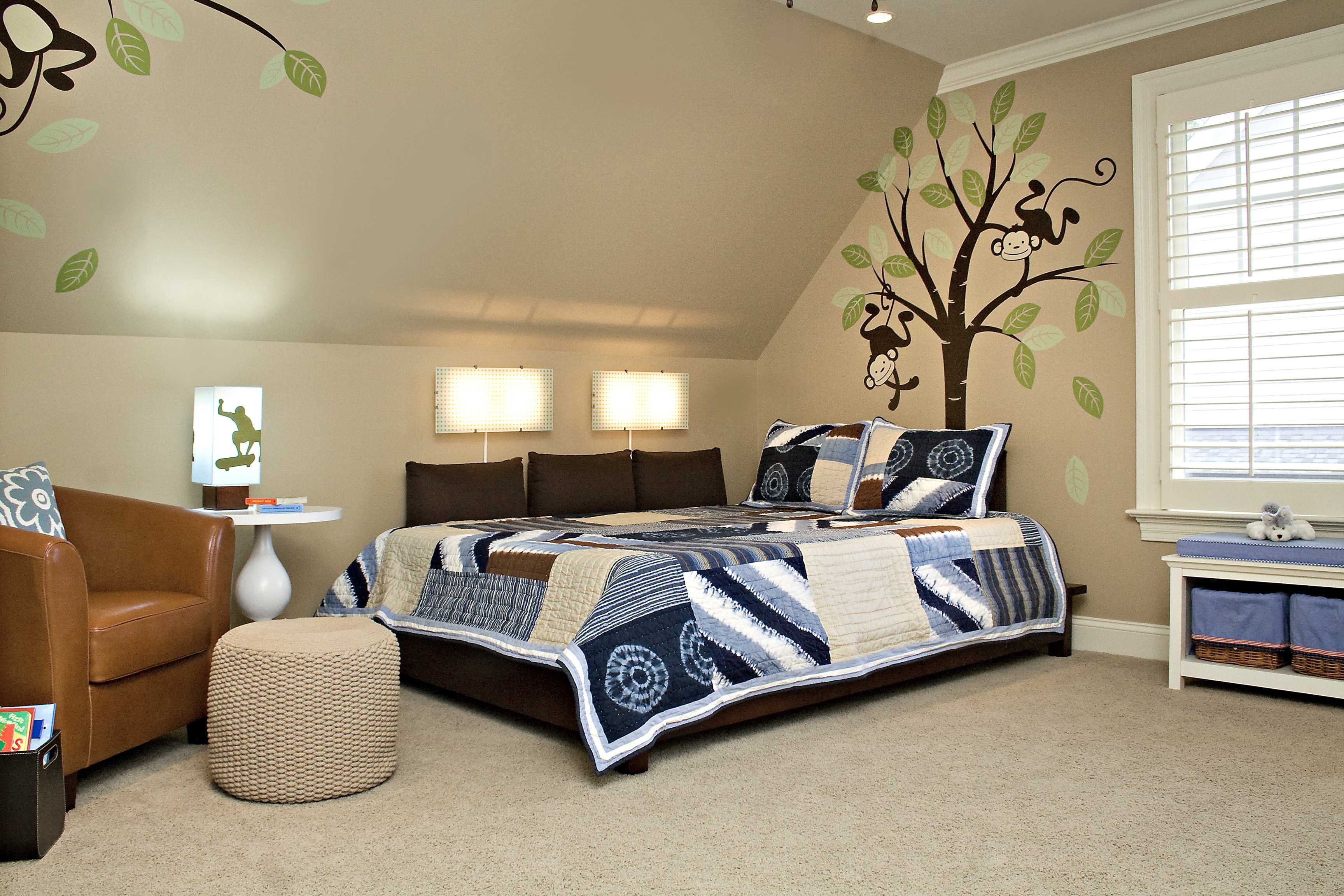 Trees and birds on the wall will give the room a special style