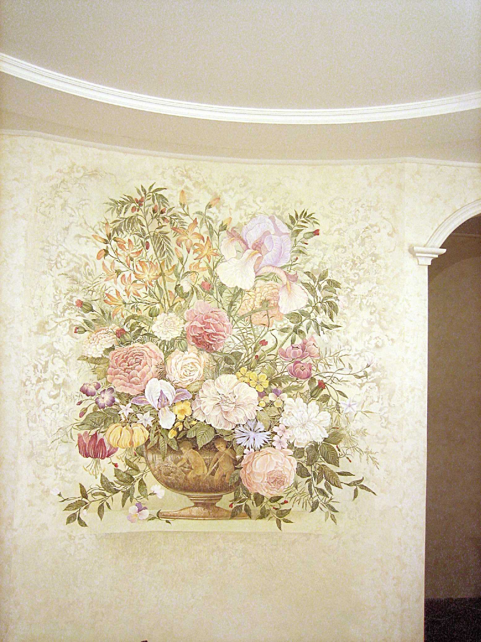 - a schematic representation of one large flower on the wall;