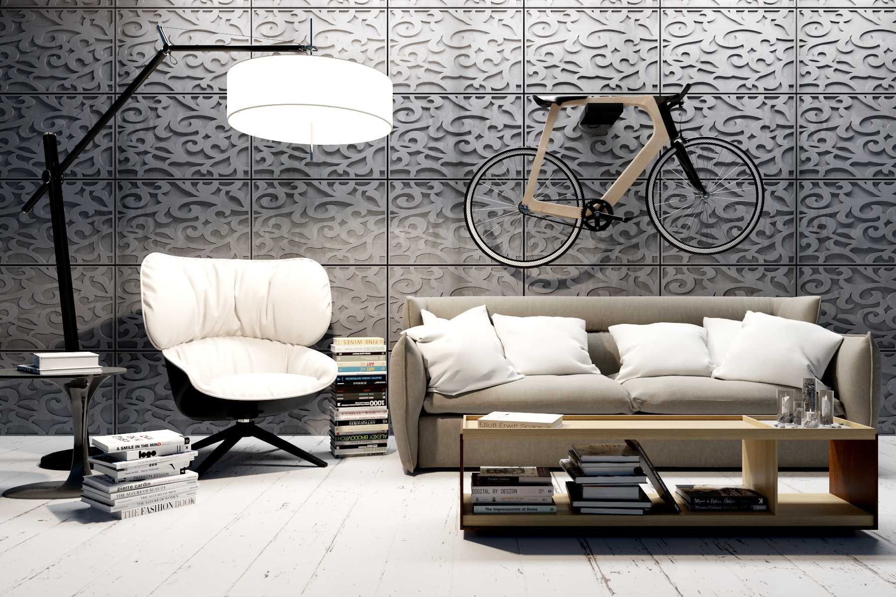The decorative stucco pattern will blend perfectly with the living room design.