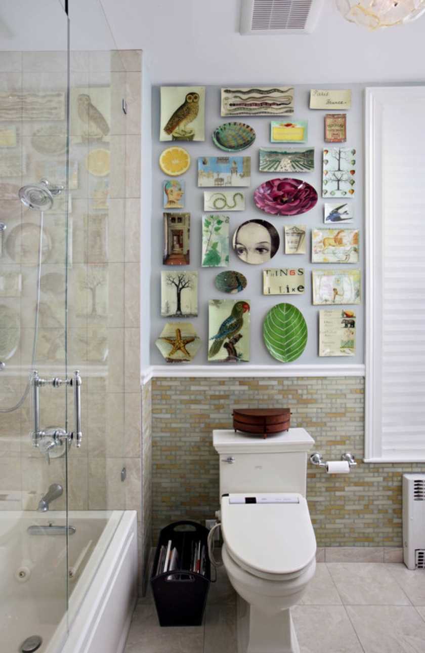 - Arbitrary arrangement of decorative plates on the wall. This method provides many opportunities for imagination.