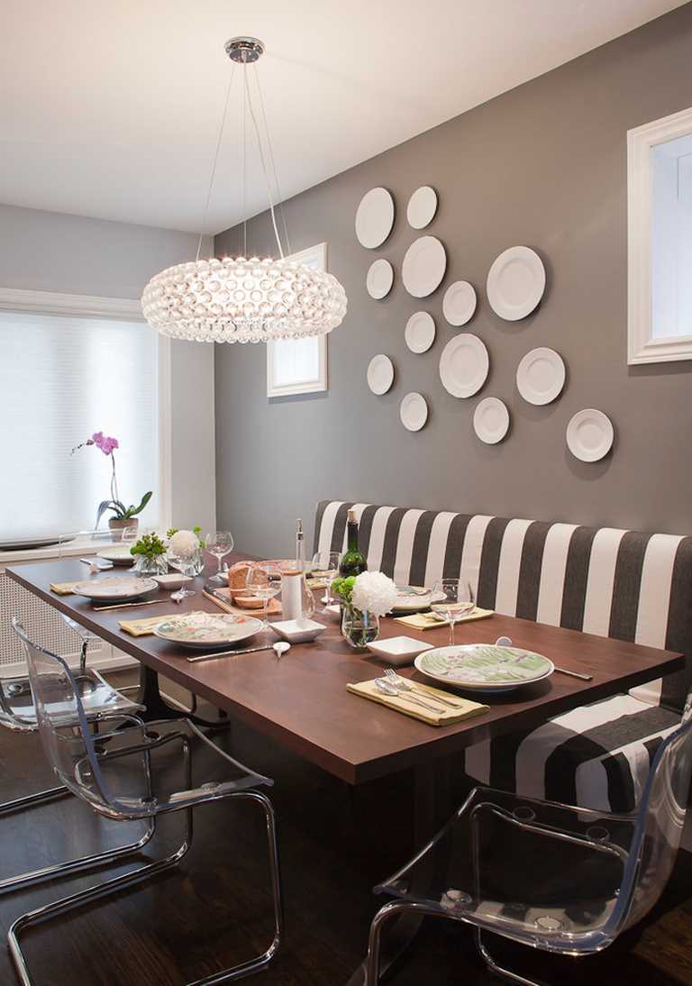 - Geometry. So you can originally fill the void on the wall by hanging dishes in the form of a square, rhombus, triangle.