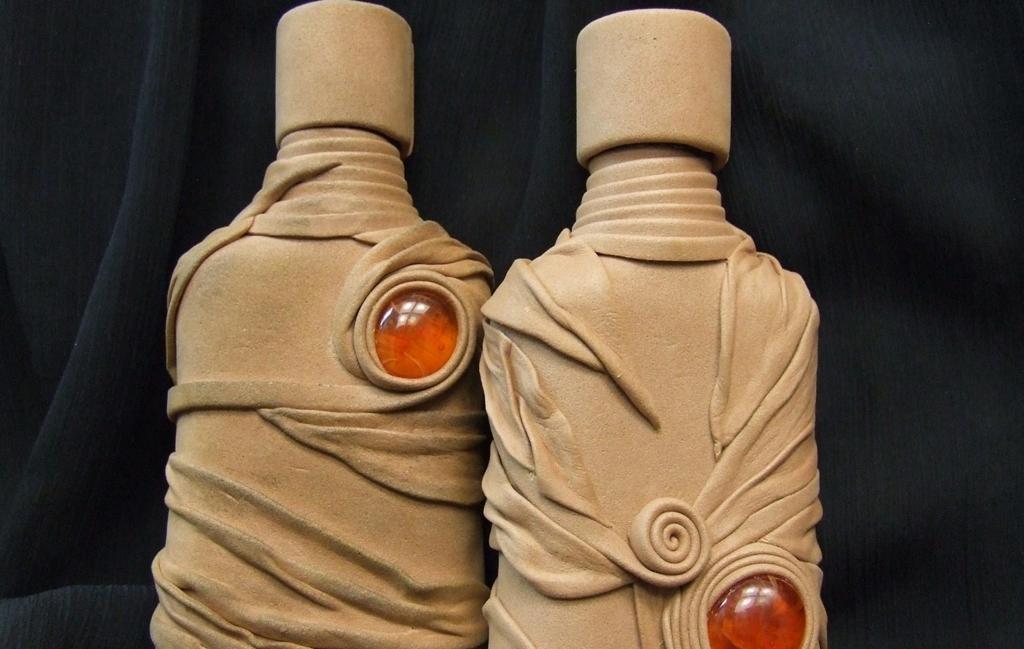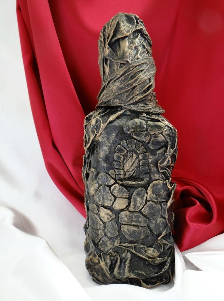 Cut off the hosiery, dip in PVA glue and put on the bottle, forming folds