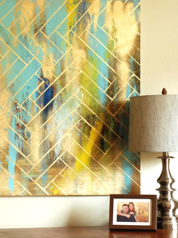 - Stencil. Pieces of masking tape are pasted onto a clean canvas, like a stencil, in different directions, shapes. They are painted on top with any colors, and after drying, the ribbon comes off.