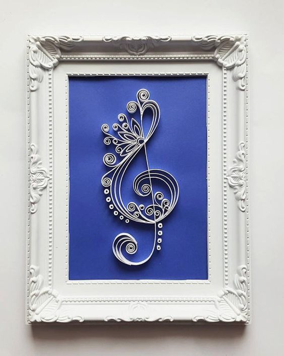Strips of paper are folded in a variety of shapes: curls, spirals and stick to the base, making up the composition.