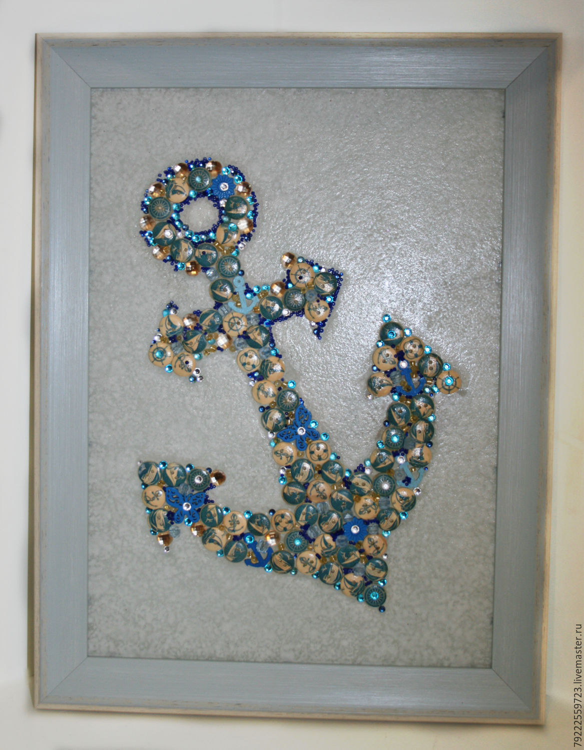 - Buttons. Stick them like leaflets to a painted tree. Spread in the form of anchors, for a marine-style kitchen, fruit or intricate patterns.