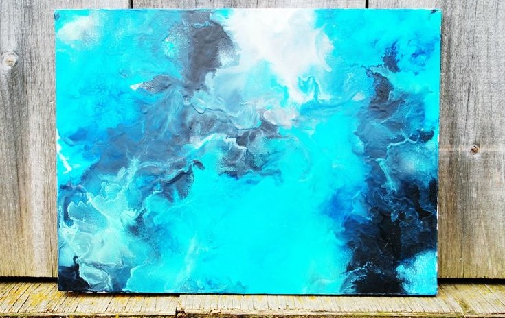 - Blot. Paint is poured on the canvas, then, taking into account the inclination, it spreads, forming a blot. To obtain a similar effect, you can use the tube, the air blown through it will disperse the paint.