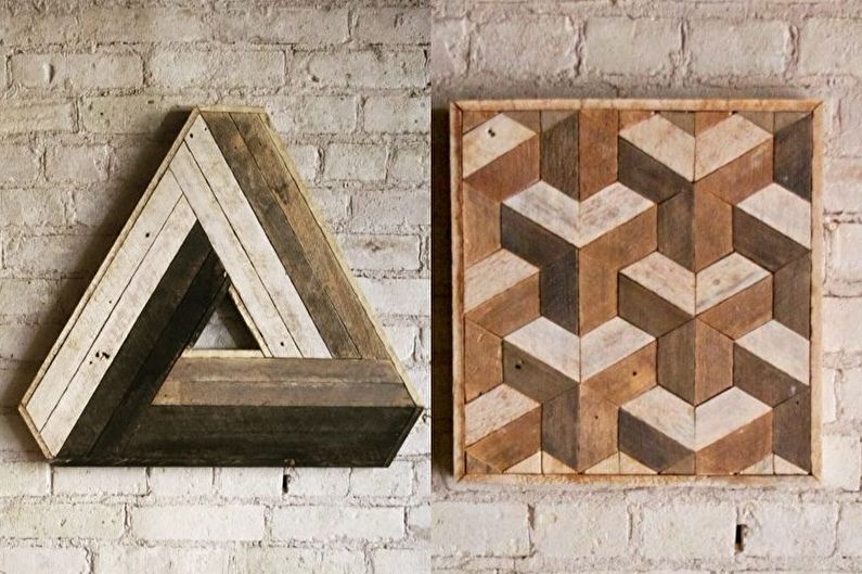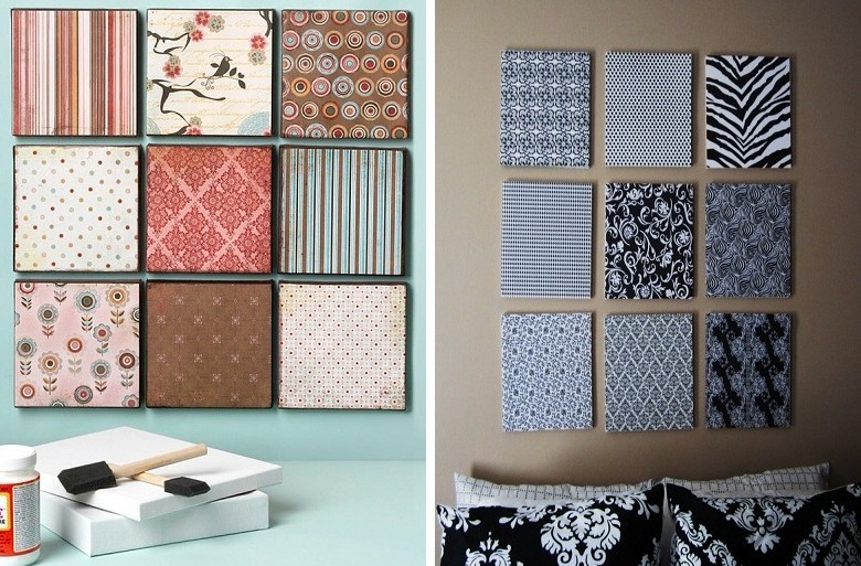 Try to make modular paintings yourself. Prepare a few wooden frames or foam sheets. Suitable for decoration: fabric, knitted fabric, photo wallpaper. Cut them into pieces, then paste, or pull on the frame. Voila, your masterpiece is ready.