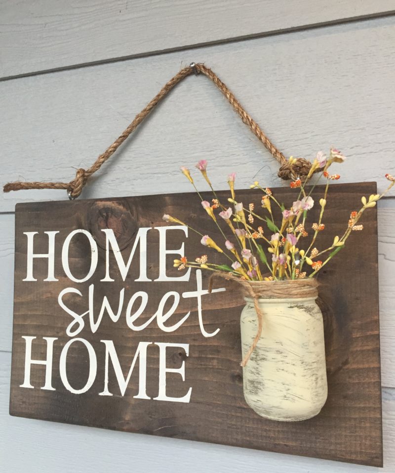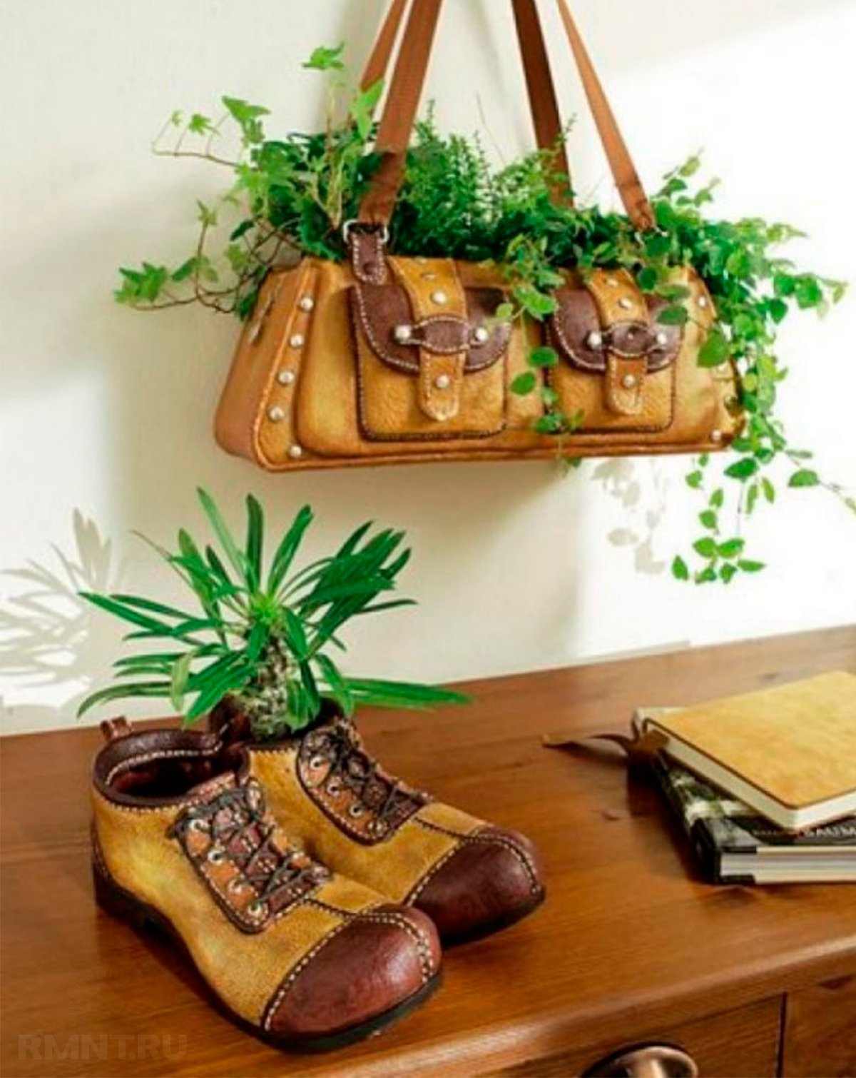 From old planks you can make a small flower basket. Paint it with any color you like. In a basket or pot, it is possible to make a small table tree of branches. We will decorate the plant with the same bells, butterflies or pendants. Any of these options look great.