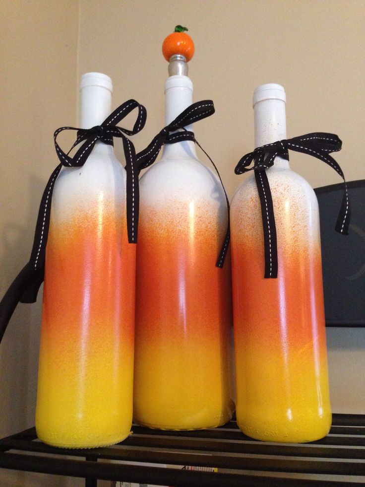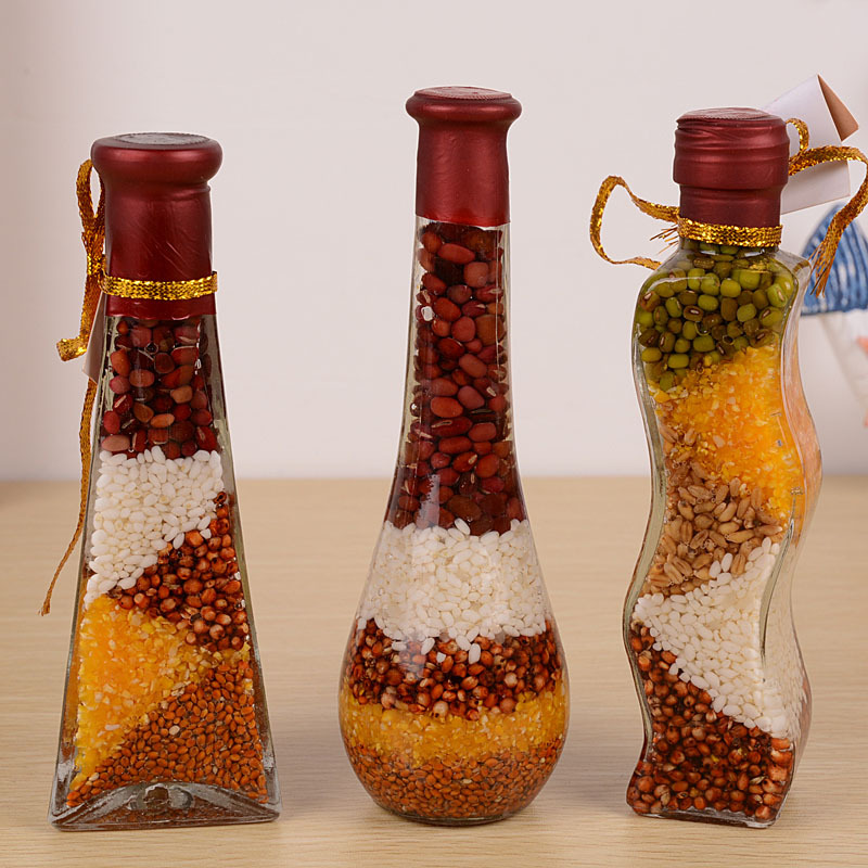 Glass bottles can be glued with toilet paper and coated with silver paint