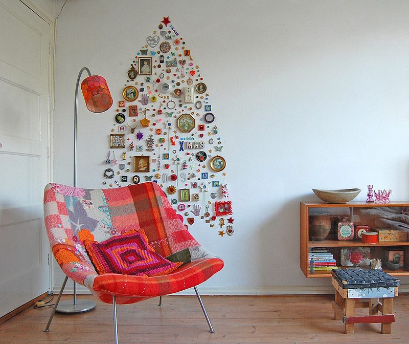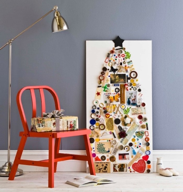 If you can’t put a real coniferous tree for the New Year at home, there is a solution. You can make a homemade Christmas tree that will decorate the wall in a conspicuous place. This decor will create a festive mood without occupying any space.